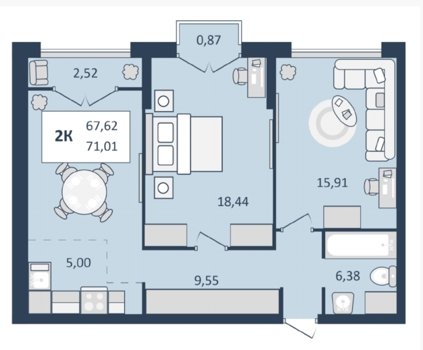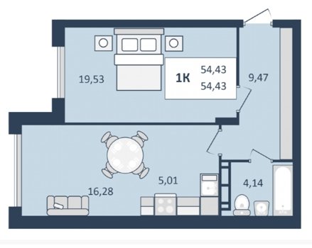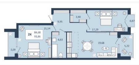 Площадь от 46.21 м2