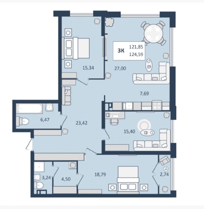 Площадь от 124.59 м2